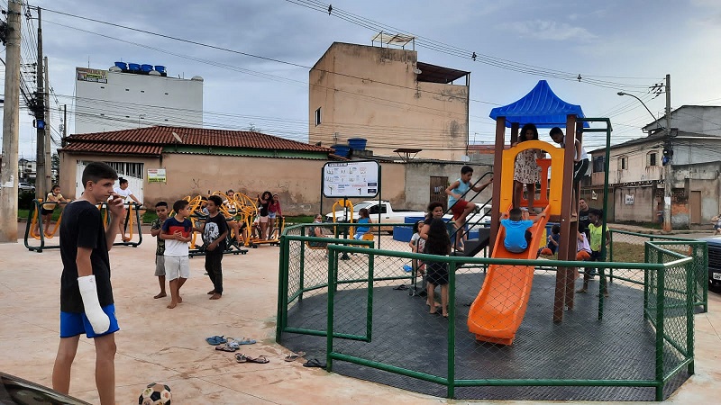 O novo espaço de lazer é composto por bancos, calçadas com acessibilidade, estacionamento, ponto de encontro comunitário (PEC), parque infantil e área de lazer para crianças e adultos.