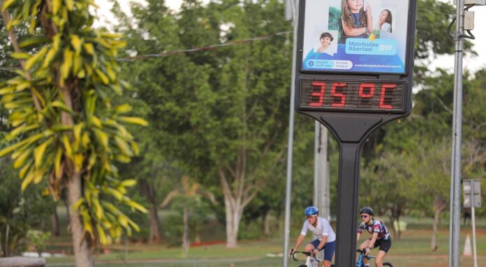 De acordo com a meteorologista Camila Frez, do Instituto Nacional de Meteorologia (Inmet), a previsão é de temperaturas acima de 30°C, baixa umidade relativa do ar, com valores abaixo de 25% (no período da tarde), e ausência de chuva nesta primeira quinzena de outubro.